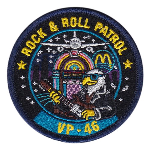 Custom patches for the Patrol Squadron 46 at Naval Air Station Whidbey Island, Oak Harbor, Washington. Our VP-46 patches are 100% embroidered with Velcro backing.