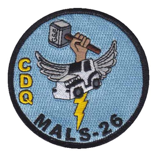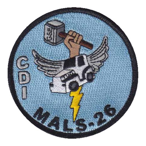 Custom patches for the Marine Aviation Logistics Squadron 26 Individual Material Readiness List at Jacksonville, North Carolina. Our MALS-26 patches are 100% embroidered with Velcro backing.
