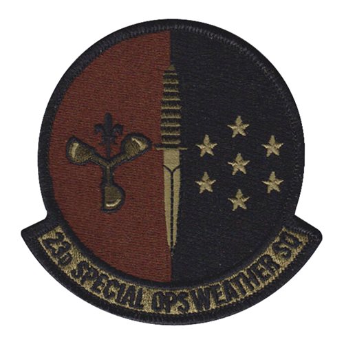 Custom patches for the 23rd Special Operations Weather Squadron at Hurlburt Field, Florida. Our 23 SOWS patches are 100% embroidered with Velcro backing.
