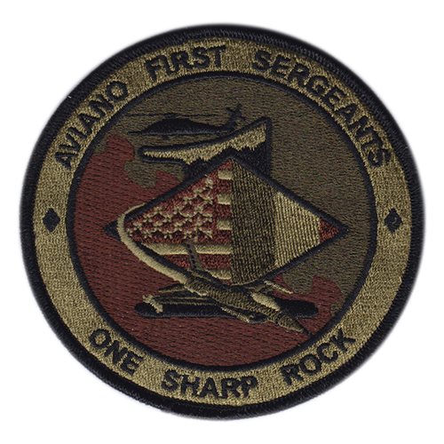 Custom patches for Aviano Air Base First Sergeants at Aviano Air Base, Italy. Our Aviano AB First Sergeants patches are 100% embroidered with Velcro backing.