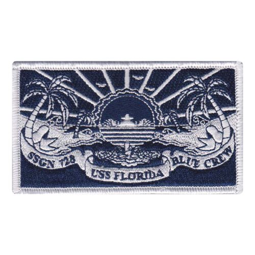 Custom patches for the United States Ship Florida (SSGN-728). Our USS Florida (SSGN-728) patches are 100% embroidered with Velcro backing.