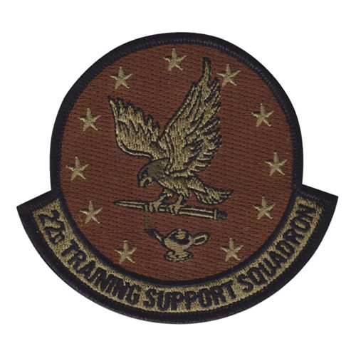 Custom patches for the 22nd Training Support Squadron at Maxwell AFB, Alabama. Our 22 TRSS patches are 100% embroidered with Velcro backing.
