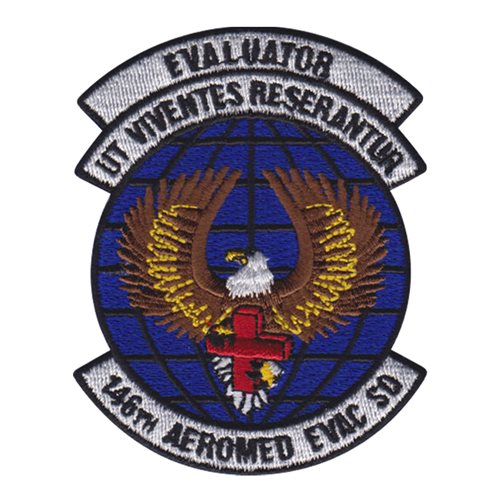 Custom patches for the 146th Aeromedical Evacuation Squadron of the California Air National Guard. Our 146 AES CA ANG patches are 100% embroidered with Velcro backing.