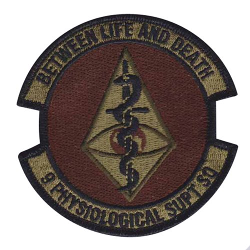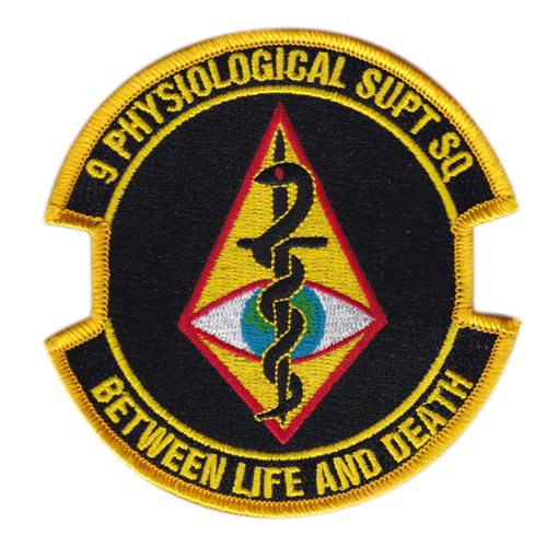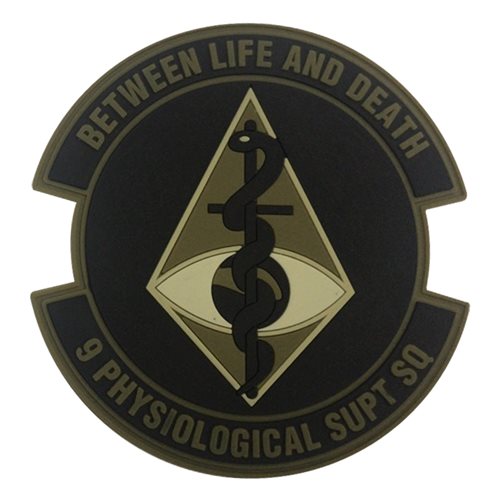 Custom patches for 9th Physiological Support Squadron at Beale Air Force Base, California. Our 9 PSPTS patches are 100% embroidered with Velcro backing.