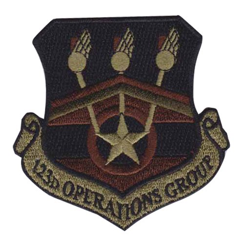 Custom patches for the 123rd Operations Group. Our 123 OG patches are 100% embroidered with Velcro backing.