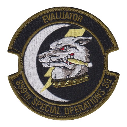 Custom patches for the 859th Special Operations Squadron at Duke Field, Florida. Our 859 SOS patches are 100% embroidered with Velcro backing.