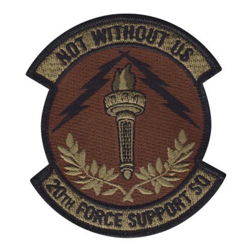 Custom patches for the 20th Force Support Squadron at Shaw Air force base, South Carolina. Our 20 FSS patches are 100% embroidered with Velcro backing.