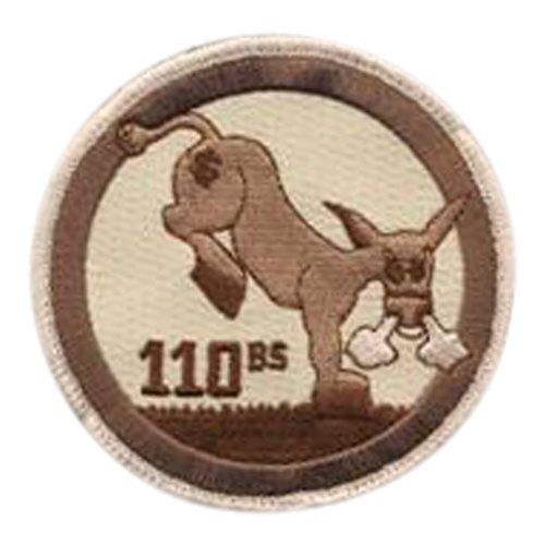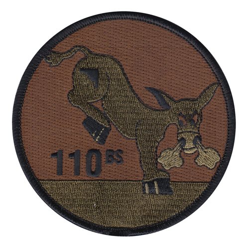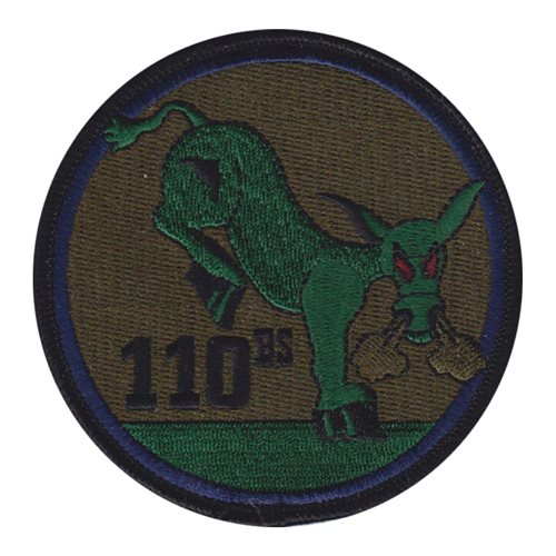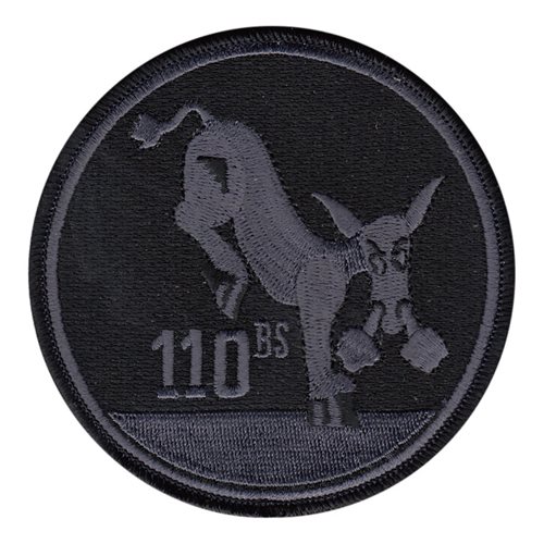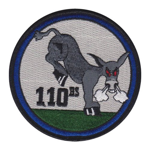 Custom patches for the 110th Bomb Squadron at Air National Guard, Missouri. Our 110 BS patches are 100% embroidered with Velcro backing.