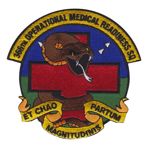 Custom patches for the 366th Operational Medical Readiness Squadron at Mountain Home Air Force Base, Idaho. Our 366 OMRS patches are 100% embroidered with Velcro backing.