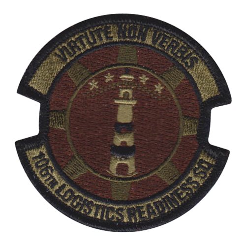 Custom patches for the 106th Logistics Readiness Squadron at Francis S. Gabreski Air National Guard Base, Westhampton Beach,New York. Our 106 LRS NY ANG patches are 100% embroidered with Velcro backing.