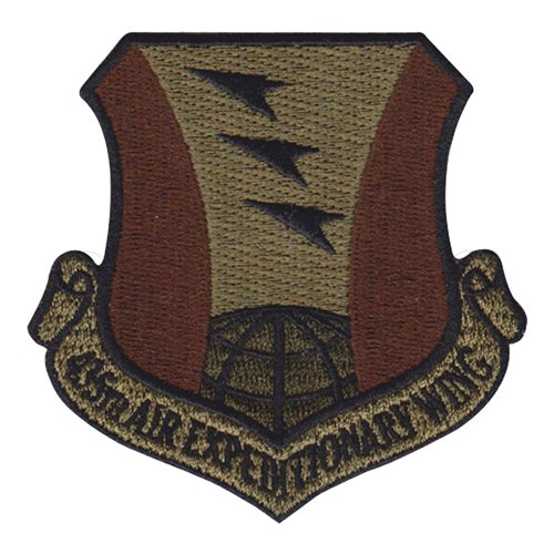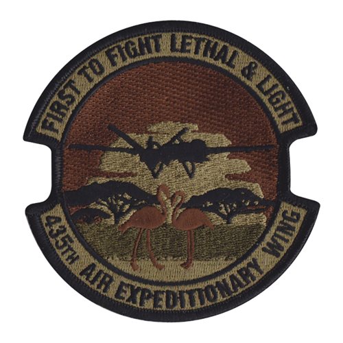 Custom patches for the 435th Air Expeditionary Wing at Ramstein Air Base, Germany. Our 435 AEW patches are 100% embroidered with Velcro backing.