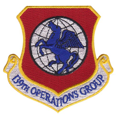 Custom patches for the 139th Operations Group at Air National Guard, Missouri. Our 139 OG patches are 100% embroidered with Velcro backing.
