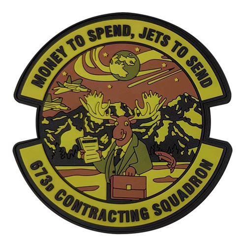 Custom patches for the 673rd Contracting Squadron. Our 673 CONS patches are 100% embroidered with Velcro backing.