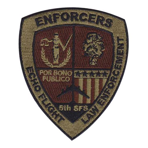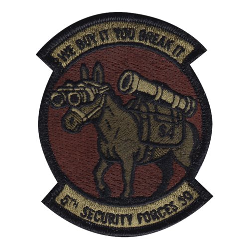 Custom patches for the 5th Security Forces Squadron at Minot Air Force Base, North Dakota. Our 5 SFS patches are 100% embroidered with Velcro backing.