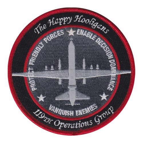 Custom patches for the 119th Operations Group of the North Dakota Air National Guard Base. Our 119 OG patches are 100% embroidered with Velcro backing.