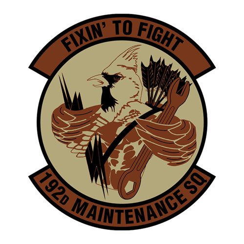 Custom patches for the 192nd Maintenance Squadron at Virginia Air National Guard. Our 192 MXS VA ANG patches are 100% embroidered with Velcro backing.