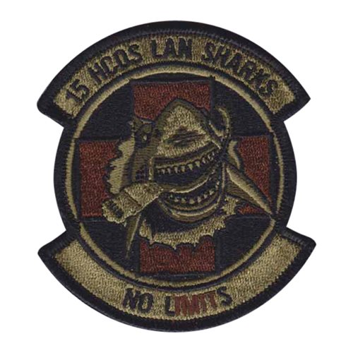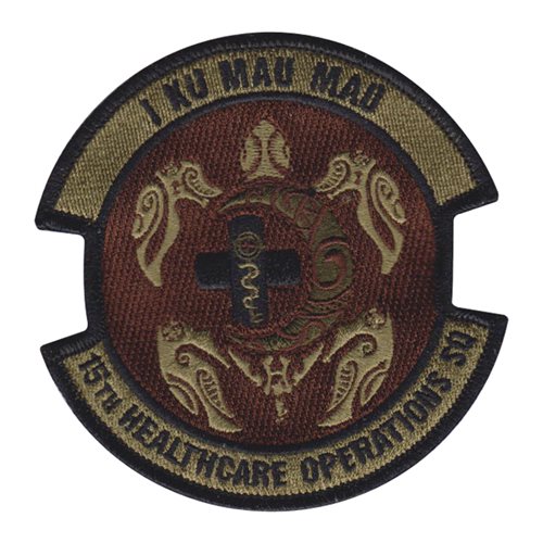 Custom patches for 15th Healthcare Operations Squadron at Hickam Air Force Base, Hawaii. Our 15 HCOS patches are 100% embroidered with Velcro backing.