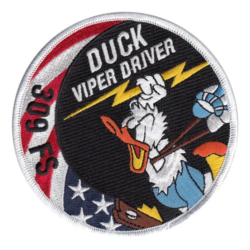 Custom patches for the 309th Fighter Squadron at Luke Air Force Base, Arizona. Our 309 FS patches are 100% embroidered with Velcro backing.
