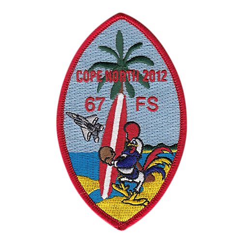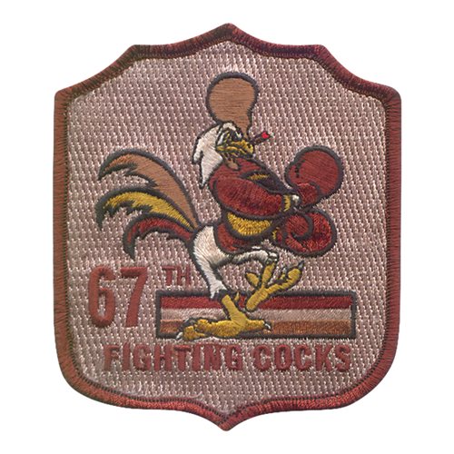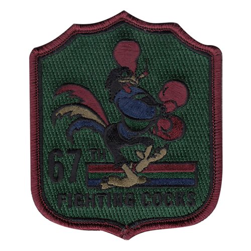 Custom patches for the 67th Fighter Squadron at Kadena Air Base, Japan. Our 67 FS patches are 100% embroidered with Velcro backing.
