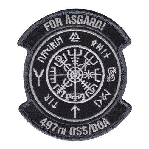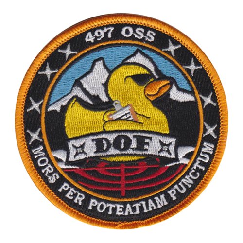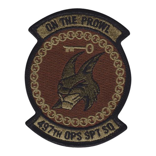 Custom patches for the 497th Operations Support Squadron at Langley AFB, Virginia. Our 497 OSS patches are 100% embroidered with Velcro backing.
