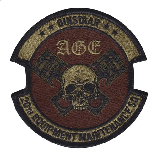 Custom patches for the 20th Equipment Maintenance Squadron at Shaw Air Force Base, South Carolina. Our 20 EMXS patches are 100% embroidered with Velcro backing.