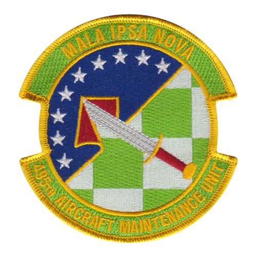 Custom patches for the 495th Aircraft Maintenance Unit at RAF Lakenheath, England. Our 495 AMU patches are 100% embroidered with Velcro backing.