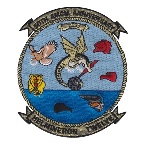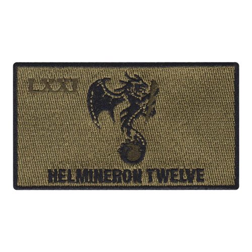 Custom patches for the Helicopter Mine Countermeasures Squadron Twelve at Naval Air Station North Island. Our HM-12 patches are 100% embroidered with Velcro backing.