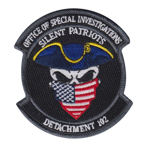 Custom patches for the Air Force Office of Special Investigations Detachment 102 at Hanscom Air Force Base, Massachusetts. Our AFOSI Det 102 patches are 100% embroidered with Velcro backing.