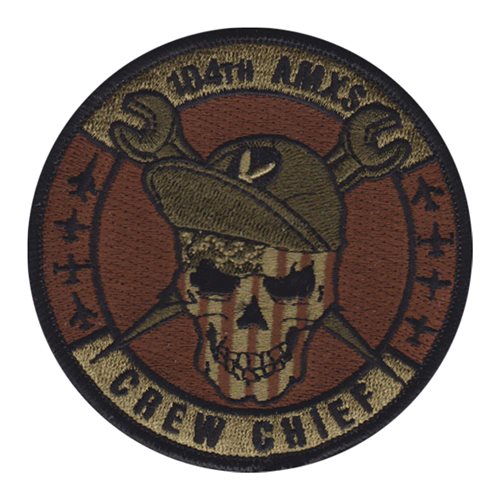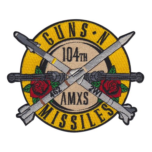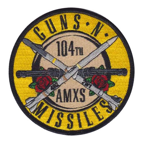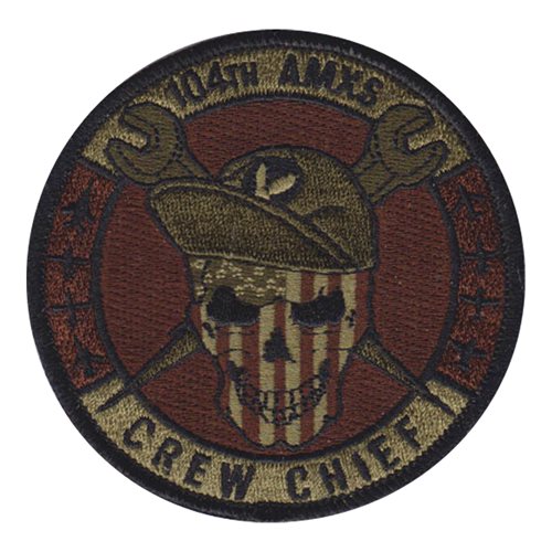 Custom patches for the 104th Aircraft Maintenance Squadron at Air National Guard, Massachusetts. Our 104 AMXS patches are 100% embroidered with Velcro backing.