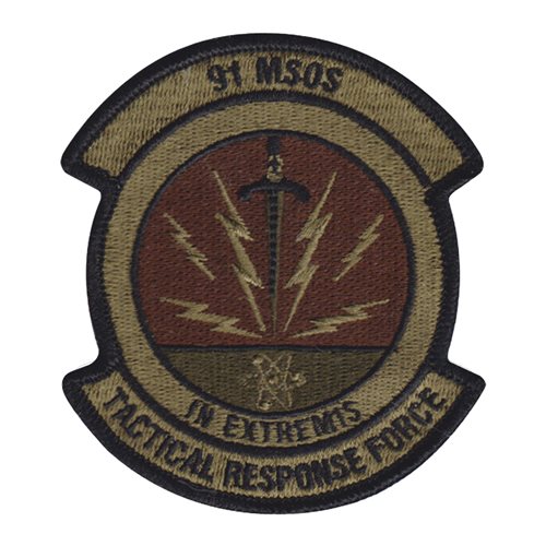 Custom patches for the 91st Missile Security Operations Squadron at Minot Air Force Base, North Dakota. Our 91 MSOS patches are 100% embroidered with Velcro backing.