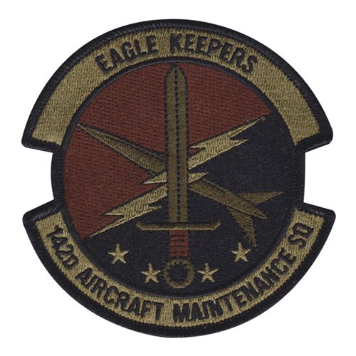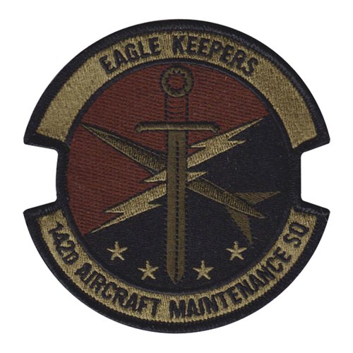 Custom patches for the 142nd Aircraft Maintenance Squadron at Portland Air National Guard Base, Oregon. Our 142 AMXS patches are 100% embroidered with Velcro backing.