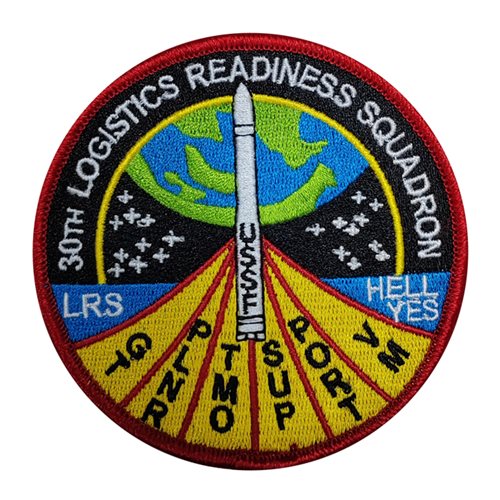Custom patches for 30th Logistics Readiness Squadron at Vandenberg Air Force Base, California. Our 30 LRS patches are 100% embroidered with Velcro backing.