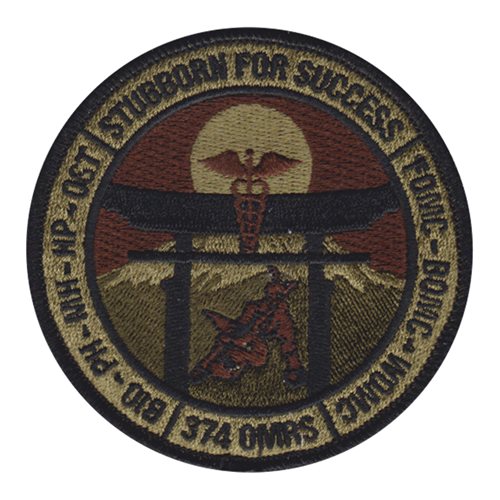 Custom patches for the 374th Operational Medical Readiness Squadron at Yokota Air Base, Japan. Our 374 OMRS patches are 100% embroidered with Velcro backing.