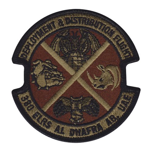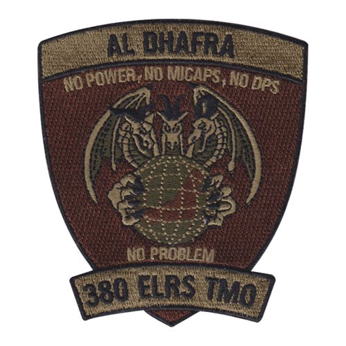 Custom patches for the 380th Expeditionary Logistics Readiness Squadron. Our 380 ELRS patches are 100% embroidered with Velcro backing.