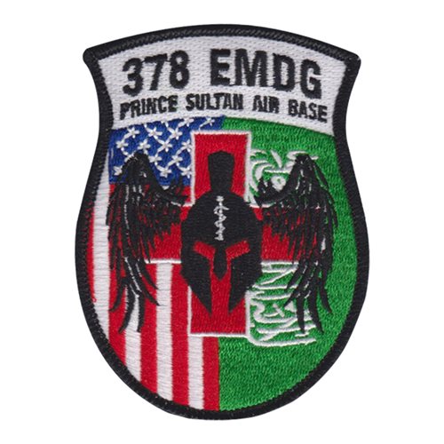 Custom patches for 378th Expeditionary Medical Group. Our 378 EMDG patches are 100% embroidered with Velcro backing.