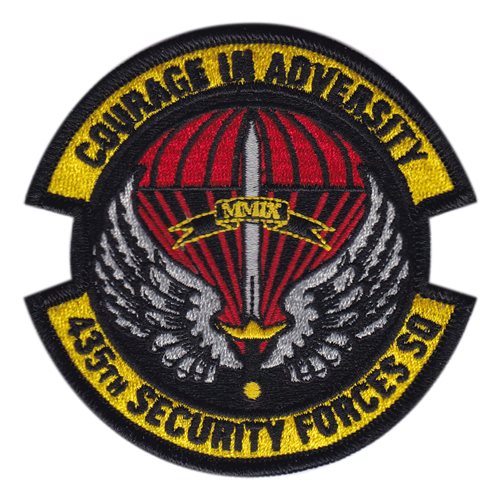 Custom patches for the 435th Security Forces Squadron at Ramstein Air Base, Germany. Our 435 SFS patches are 100% embroidered with Velcro backing.