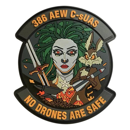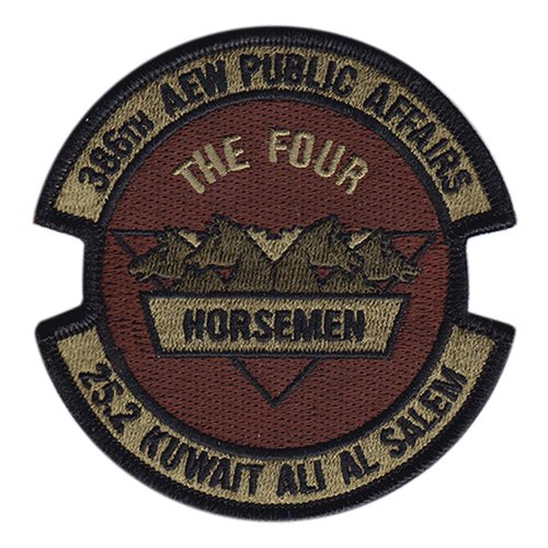 Custom patches for the 386th Air Expeditionary Wing at Ali Al Salem Air Base, Kuwait. Our 386 AEW patches are 100% embroidered with Velcro backing.