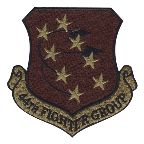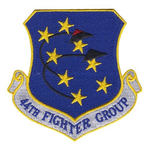 Custom patches for the 44th Fighter Group at Tyndall Air Force Base, Florida. Our 44 FG patches are 100% embroidered with Velcro backing.
