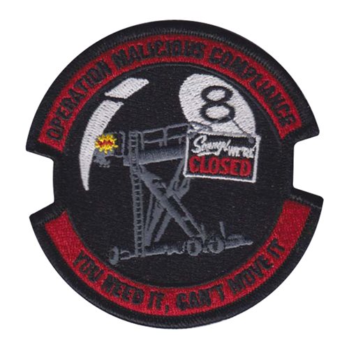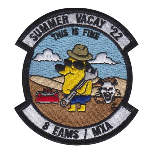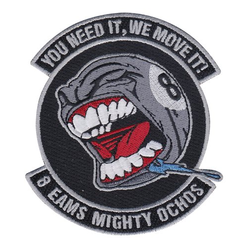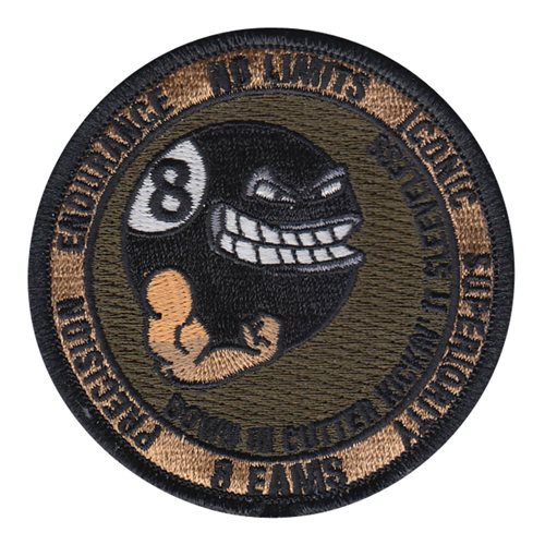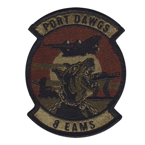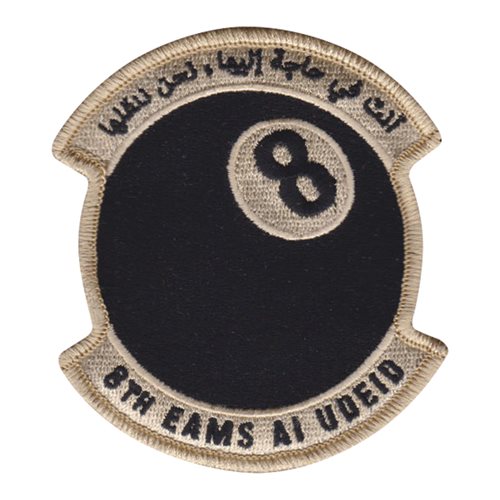 Custom patches for the 8th Expeditionary Air Mobility Squadron at Al Udeid Air Base, Qatar. Our 8 EAMS patches are 100% embroidered with Velcro backing.