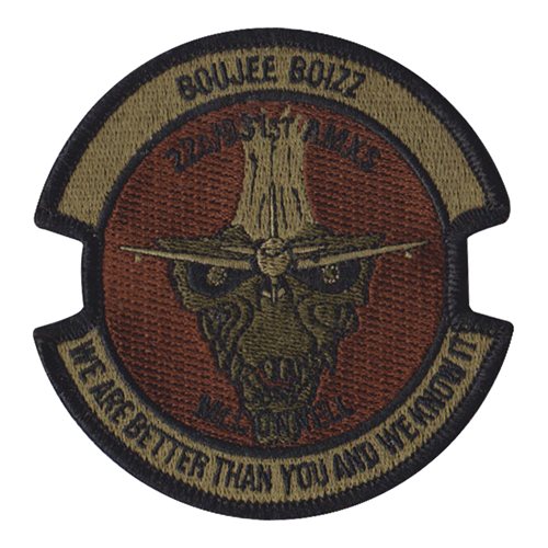 Custom patches for the 22nd Aircraft Maintenance Squadron at McConnell Air Force Base. Our 22 AMXS patches are 100% embroidered with Velcro backing.