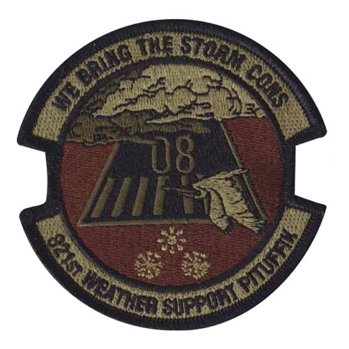 Custom patches for the 821st Support Squadron at Space Base Delta 1, Colorado. Our 821 SPTS patches are 100% embroidered with Velcro backing.