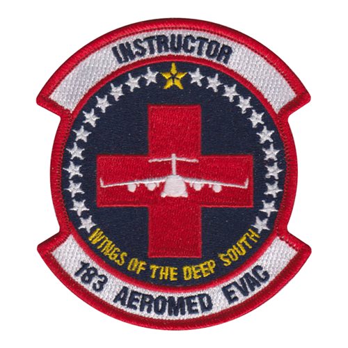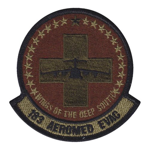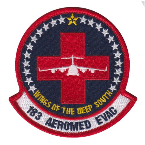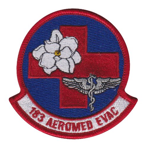 Custom patches for the 183rd Aeromedical Evacuation Squadron at Air National Guard, Mississippi. Our 183 AES patches are 100% embroidered with Velcro backing.