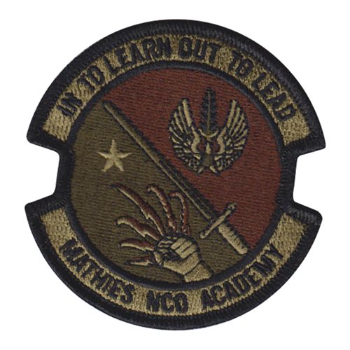 Custom patches for the Mathies NCO Academy at Keesler Air Force Base, Mississippi. Our Mathies NCO Academy patches are 100% embroidered with Velcro backing.