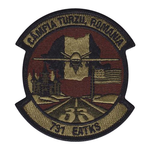 Custom patches for 731st Expeditionary Attack Squadron at Aviano Air Base, Italy. Our 731 EATKS patches are 100% embroidered with Velcro backing.