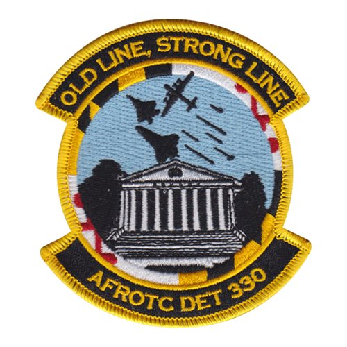 Custom patches for the Air Force Reserve Officers’ Training Corps Det 330 University of Maryland at College Park, Maryland. Our AFROTC Det 330 University of Maryland patches are 100% embroidered with Velcro backing.