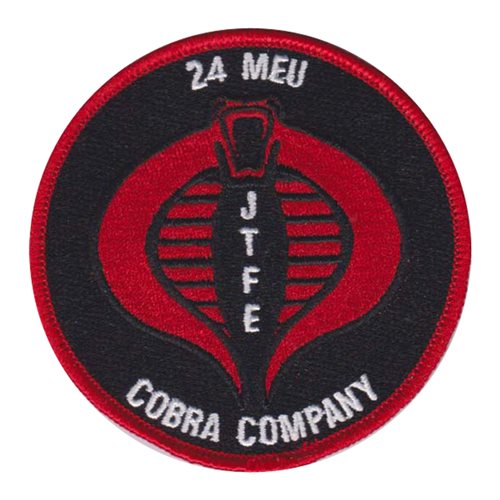 Custom patches for the 24th Marine Expeditionary Unit at Marine Corps Base Camp Lejeune, North Carolina. Our 24 MEU patches are 100% embroidered with Velcro backing.