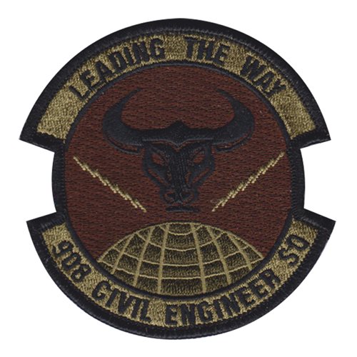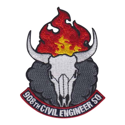 Custom patches for the 908th Civil Engineer Squadron at Maxwell-Gunter Air Force Base, Montgomery, Alabama. Our 908 CES patches are 100% embroidered with Velcro backing.