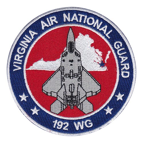 Custom patches for the 192nd Wing at Virginia Air National Guard. Our 192 WG VA ANG patches are 100% embroidered with Velcro backing.