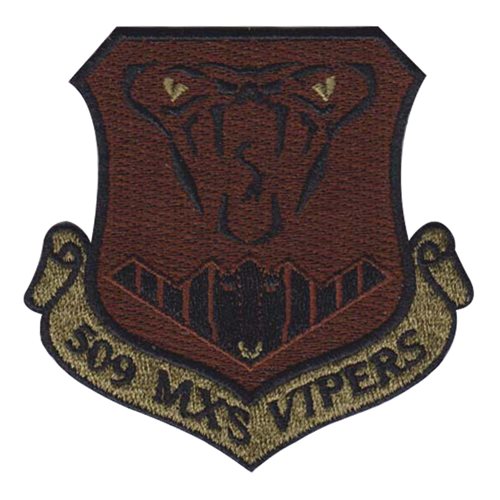 Custom patches for the 509th Maintenance Squadron at Whiteman Air Force Base, Missouri. Our 509 MXS patches are 100% embroidered with Velcro backing.