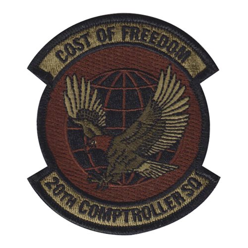 Custom patches for the 20th Comptroller Squadron at Shaw Air Force Base, South Carolina. Our 20 CPTS patches are 100% embroidered with Velcro backing.